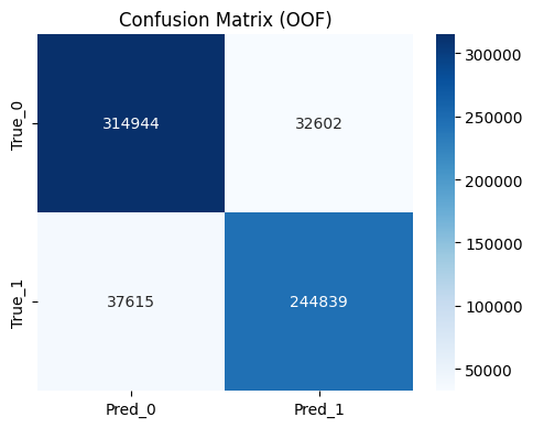 0.5. - Evaluate confusion matrix and classification report on OOF predictions.